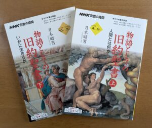 2018年、NHKラジオ「宗教の時間」で、『物語としての旧約聖書』(上・下)が放送されました。講師は月本昭男氏。私は放送は聞かなかったのですが、書店でテキスト(上・下)を見かけて購入。旧約聖書物語を12回で概観する内容で、古代オリエント世界との関連の説明を大変興味深く読みました。このテキスト2冊は、現在1冊にまとめられて、『物語としての旧約聖書: 人類史に何をもたらしたのか』(月本昭男 NHKブックス)となっています。