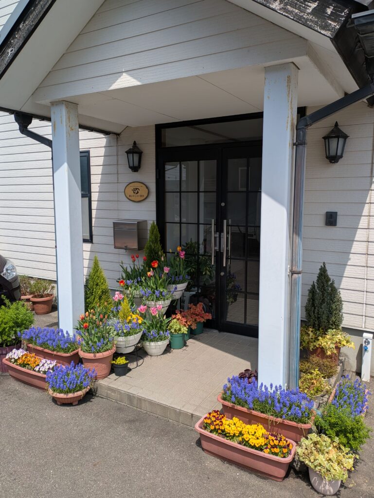 2025年 春の教会玄関はこれで完成。来週日曜日あたりが見頃ピークになるかも。