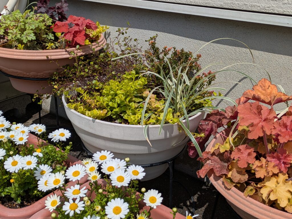あれこれと鉢のレイアウトを考え、並べ直すのが楽しいんですよね。